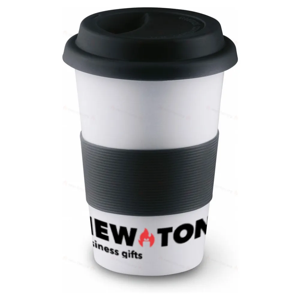 Одностенчатая керамическая кружка с силиконовой крышкой и ободком. Емкость 400мл . Керамотрансфер подойдет для мытья в посудомоечной машине. Поскольку это одностенчатая кружка , осторожно - может нагреваться!