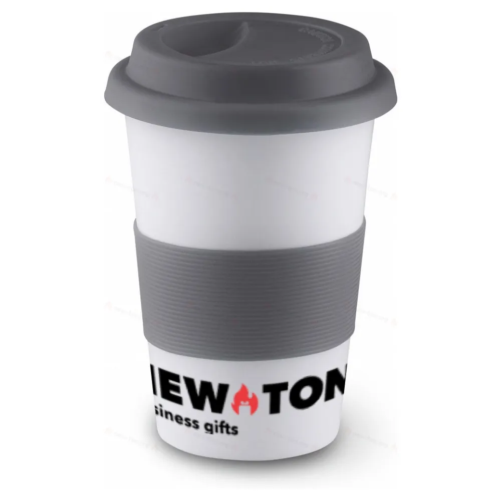 Одностенчатая керамическая кружка с силиконовой крышкой и ободком. Емкость 400мл . Керамотрансфер подойдет для мытья в посудомоечной машине. Поскольку это одностенчатая кружка , осторожно - может нагреваться!