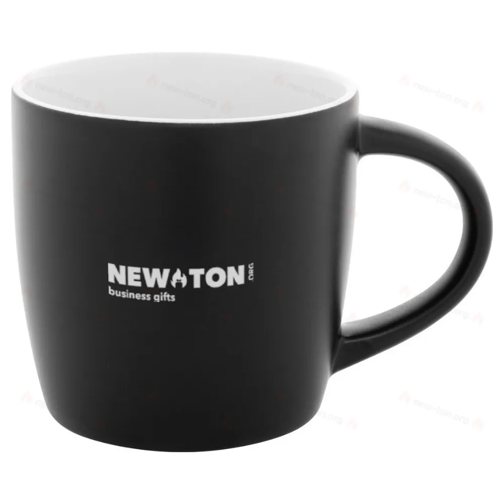 Черная керамическая кружка с цветным внутренним слоем, объемом 300 мл. Специальное покрытие для гравировки, гравированный логотип соответствует цвету внутреннего слоя. В коробке из крафт-бумаги.