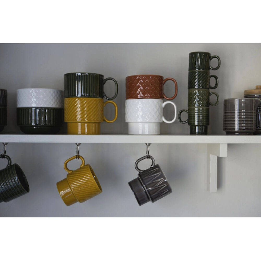 Кружка для кофе в наборе из 2 штук с характерным рельефом. Кружка для кофе является частью серии Coffee & More, созданной компанией Sagaform совместно с дизайнером Марго Бароло. Дизайн серии играет с прямым, веселым и простым языком 70-х годов. Серия доступна в различных формах, узорах и цветах, лучше всего смотрится в сочетании всего! Подходит для использования в микроволновой печи и посудомоечной машине. Материал: Фарфор Дизайнер: Марго Бароло Вес: 580 г Артикул: 5018371 Размер: 30 кл; высота: 90 мм Упаковка: Подарочная коробка