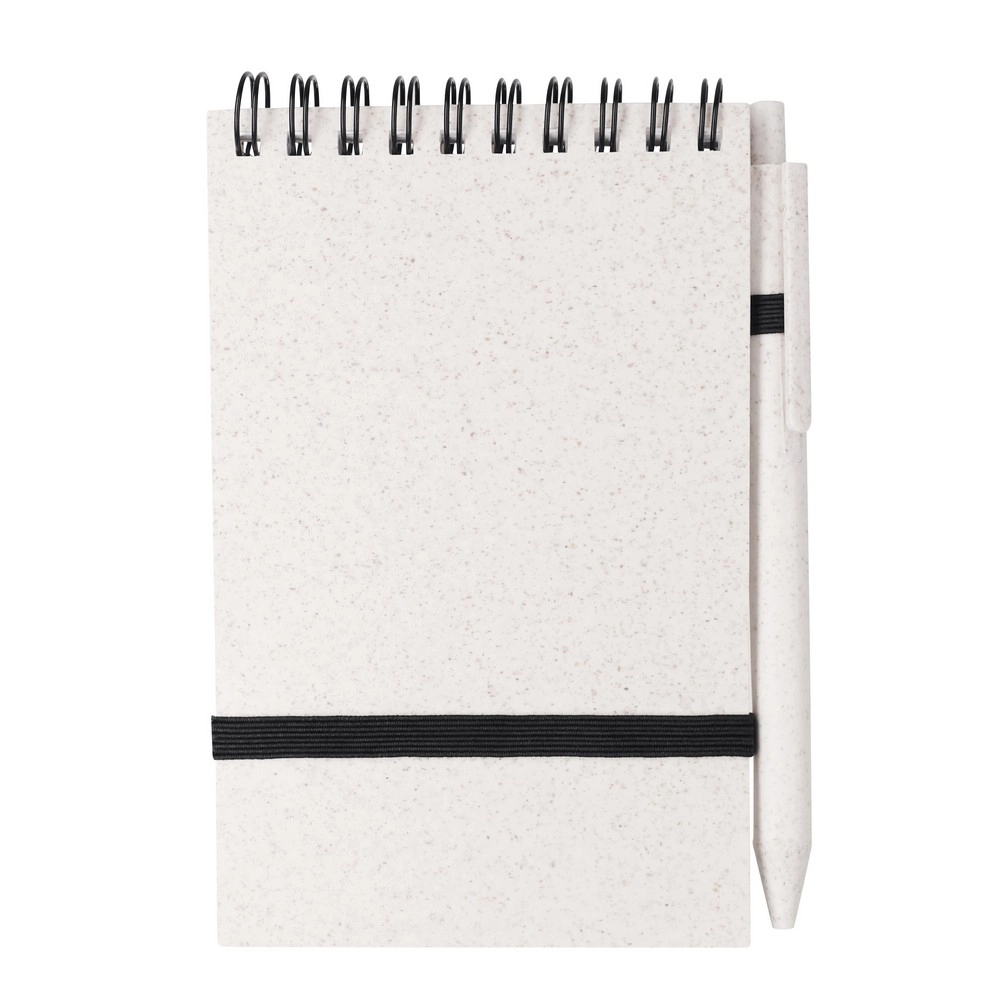 Набор для офиса, кружка из ПП вместимостью 370 мл, блокнот на 70 линейных листах с твердой обложкой, шариковая ручка пишет синим цветом, изделие из пшеничной соломы и ПП.