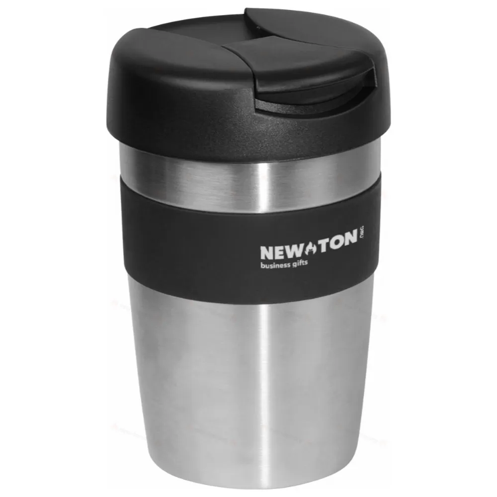 Металлическая термокружка 300 мл с закрывающимся мундштуком и резиновой зоной. Логотип можно разместить непосредственно на изделии.