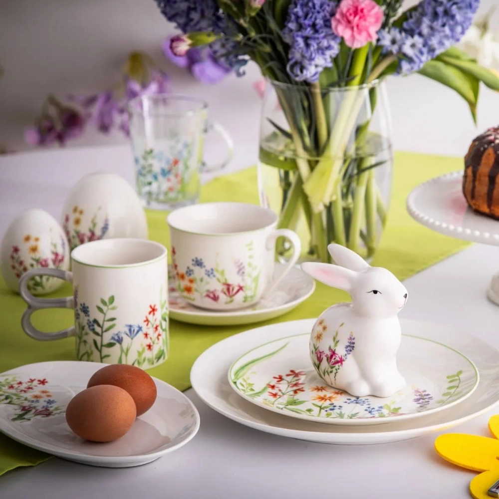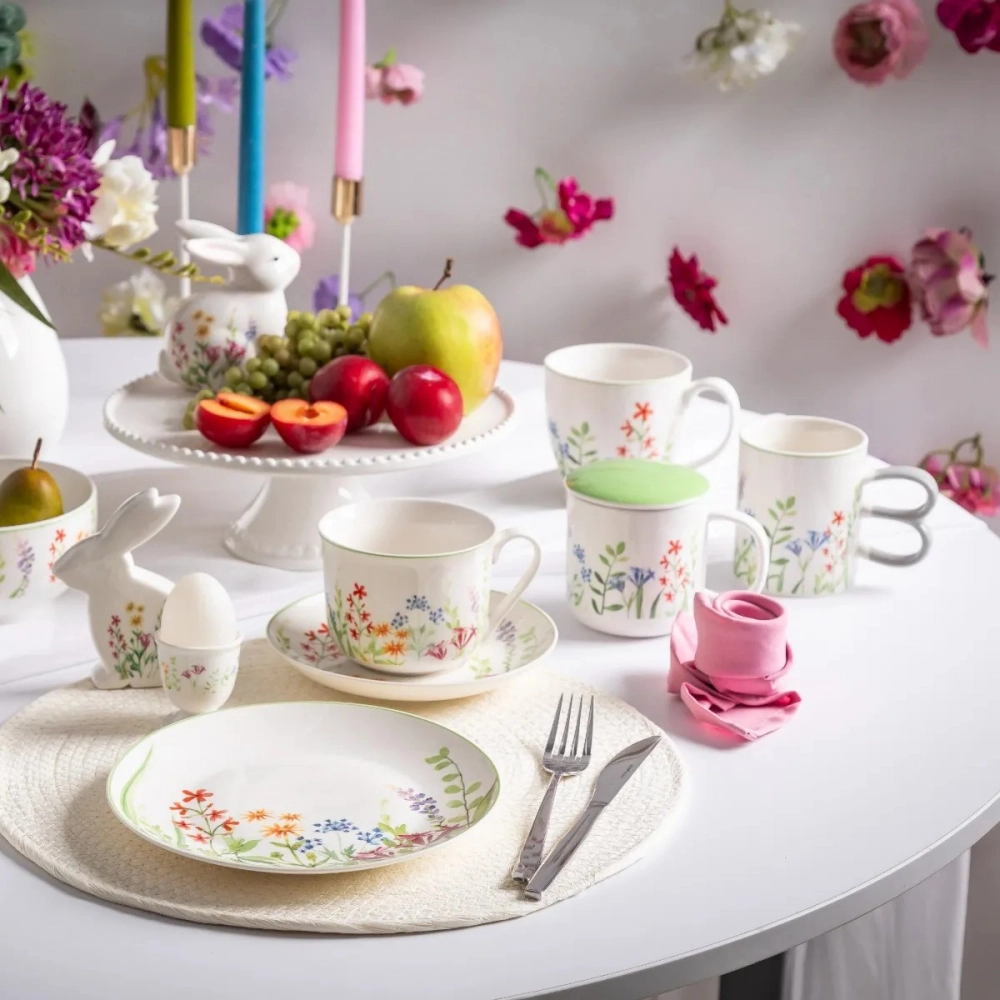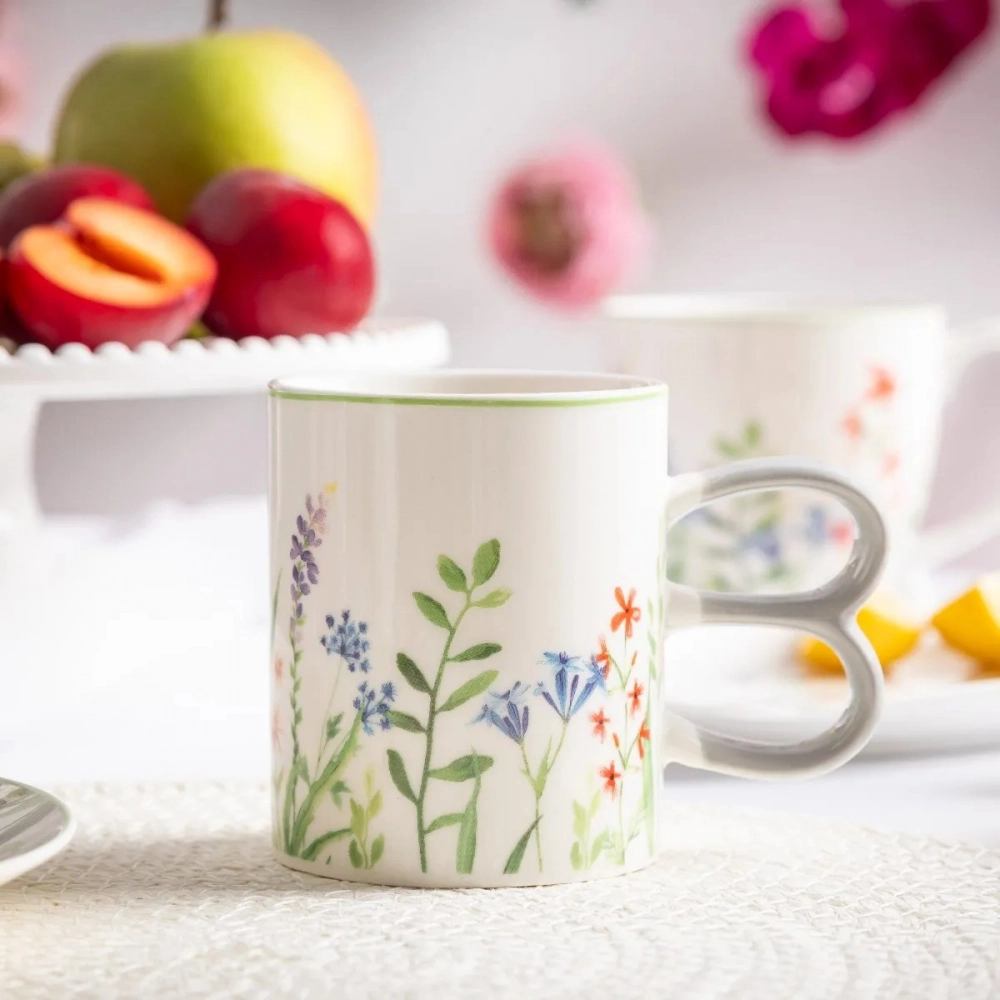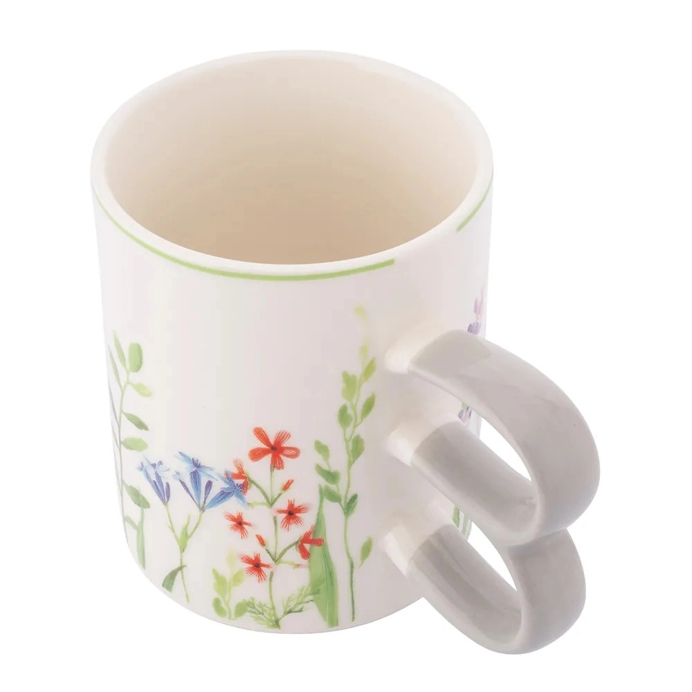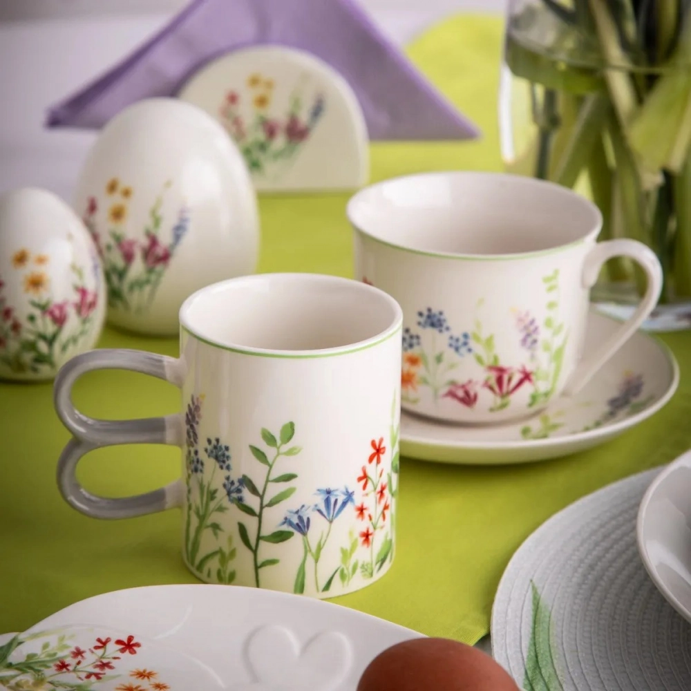 Привнесите немного волшебства на свою кухню с кружкой, которая сочетает в себе нежность природы и очарование сказки. Украшенная мотивом красочных полевых цветов, эта фарфоровая кружка объемом 370 мл очаровывает своей утонченной элегантностью, а необычная двойная ручка в форме заячьих ушей добавляет ей неповторимый характер. Изготовленная из высококачественного фарфора NBC, она гарантирует долговечность и комфорт. Ее простая, классическая форма подчеркивает вневременной стиль, а зеленая линия по краю ненавязчиво дополняет цветочный узор. Эта кружка идеально подходит для повседневного использования, украшая утренние завтраки и вечерние моменты с любимым напитком. Кружка «Пробуждение природы» с заячьими ушками — это прекрасный подарок для любителей природы и уникальный аксессуар для дома. Независимо от времени года, ее изящный узор сделает каждый момент с чашкой любимого напитка еще приятнее. Создайте гармоничную атмосферу на своей кухне и добавьте частичку природы в свои ежедневные ритуалы!