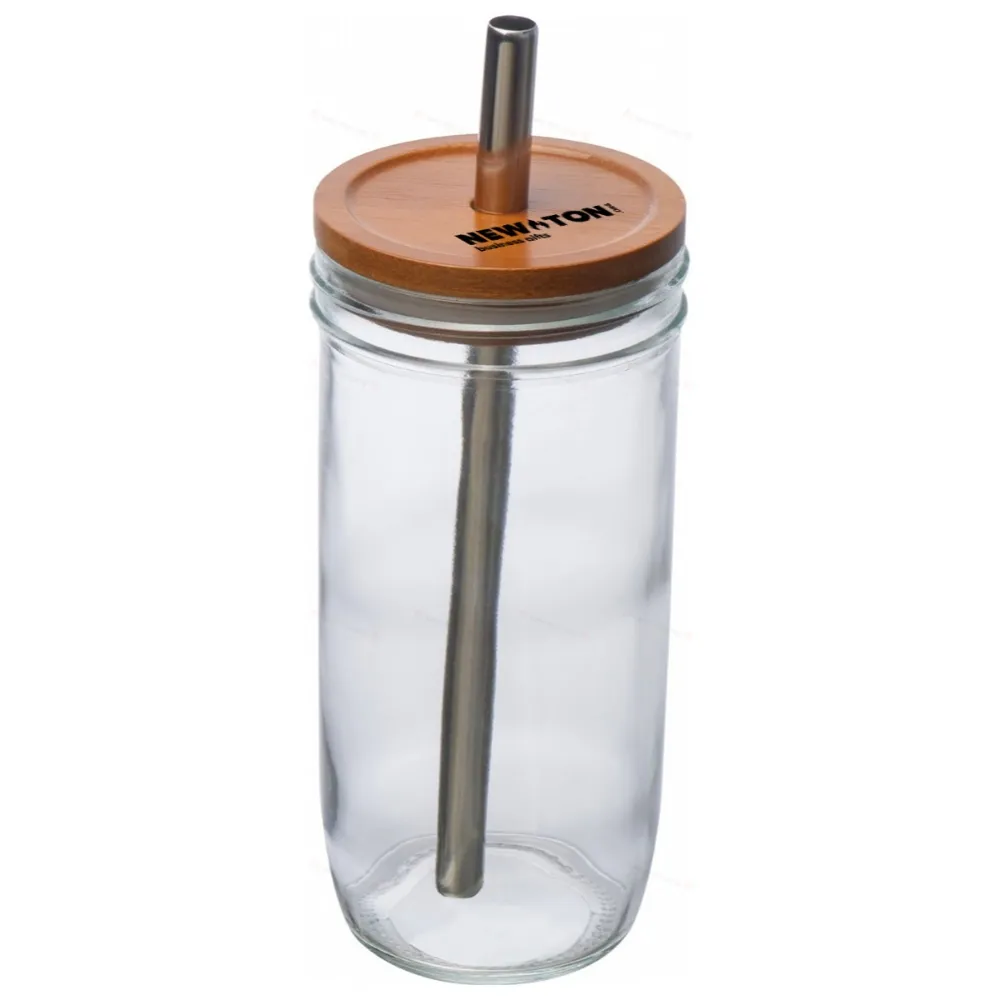 Стеклянная кружка с бамбуковой крышкой и соломинкой