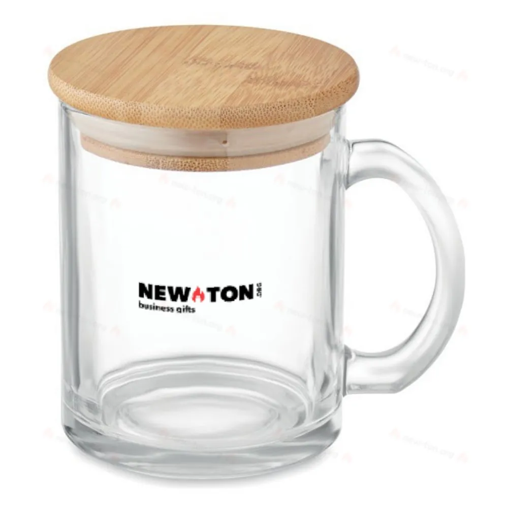 Кружка из переработанного стекла с бамбуковой крышкой. Емкость: 300 мл.