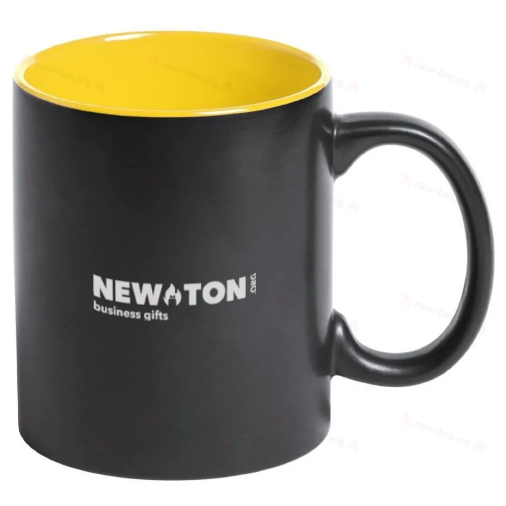 Черная керамическая кружка с цветной внутренней стороной, 350 мл. Гравированный логотип имеет специальное покрытие для гравировки и соответствует внутреннему цвету. В подарочной коробке.