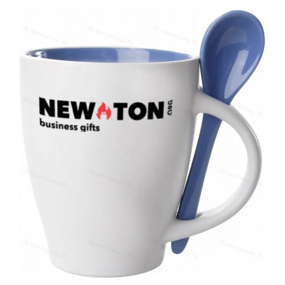 Белая керамическая кружка с цветной внутренней частью и керамической ложкой в тон, 300 мл.