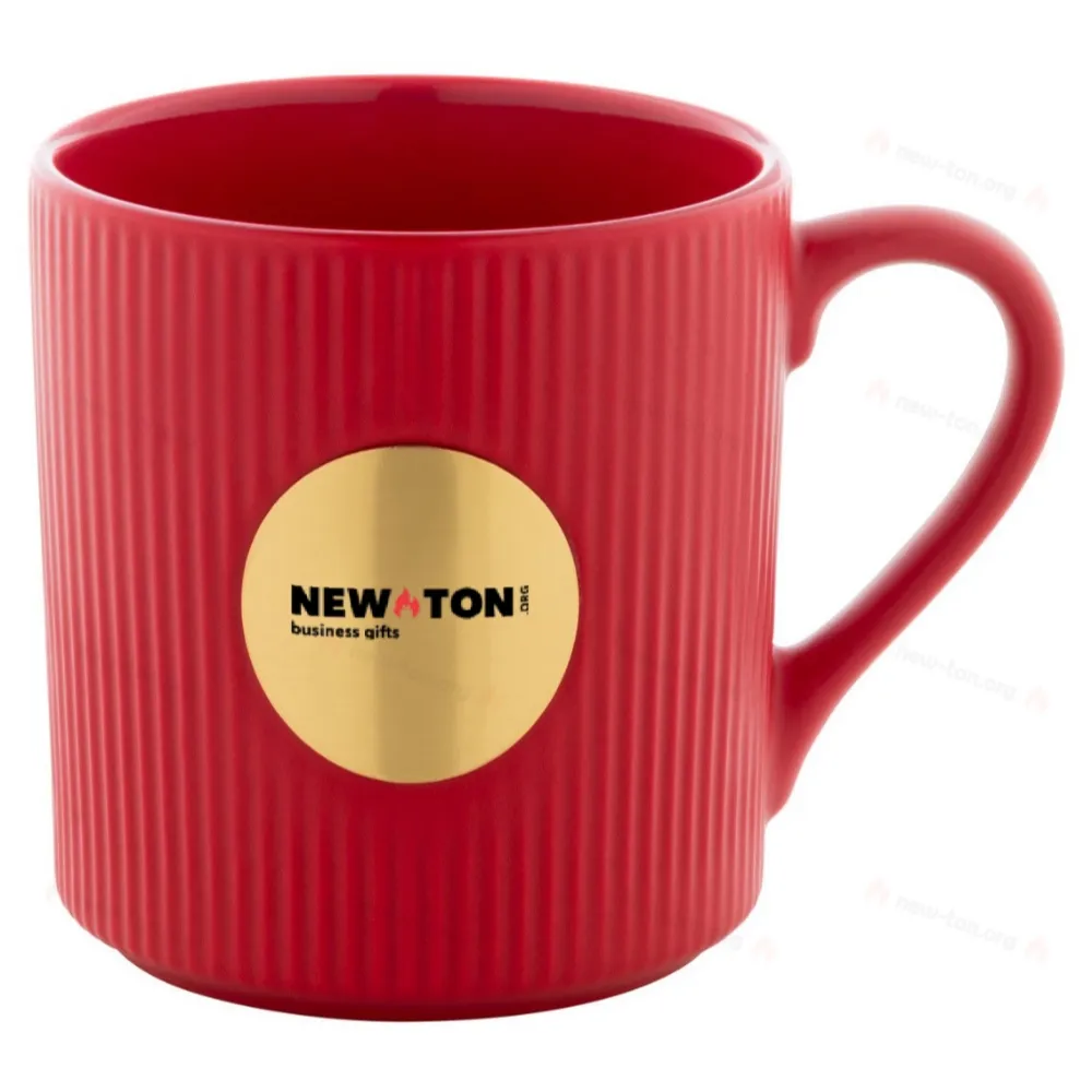 Керамическая кружка высокого качества с латунной пластиной для гравировки логотипа. С матовой внешней и глянцевой внутренней отделкой. 330 мл. В коробке из крафт-бумаги.