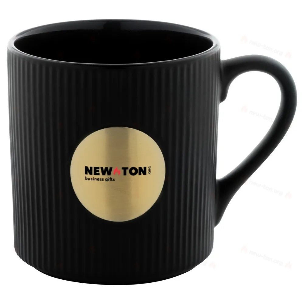 Керамическая кружка высокого качества с латунной пластиной для гравировки логотипа. С матовой внешней и глянцевой внутренней отделкой. 330 мл. В коробке из крафт-бумаги.