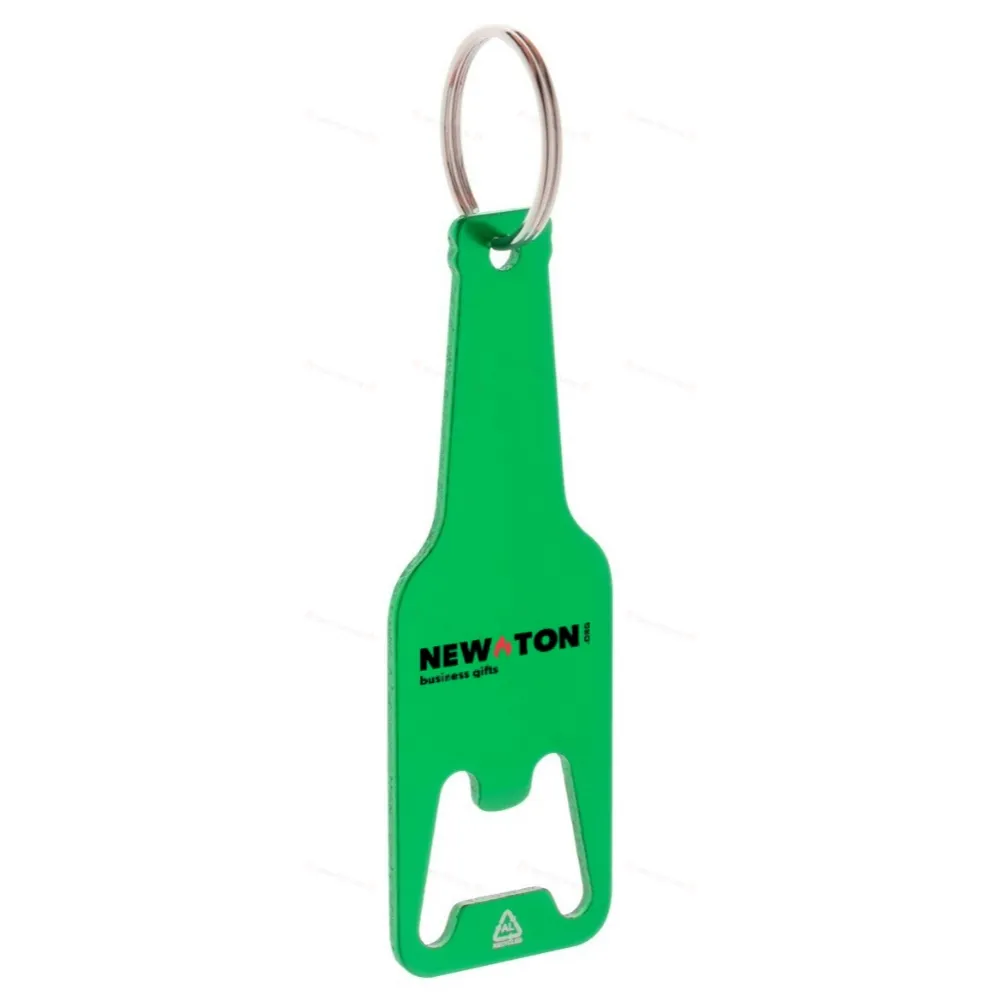 Бутылочный открывашка из переработанного алюминия в форме бутылки с металлическим кольцом для ключей.