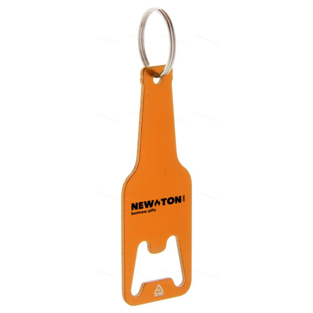 Бутылочный открывашка из переработанного алюминия в форме бутылки с металлическим кольцом для ключей.