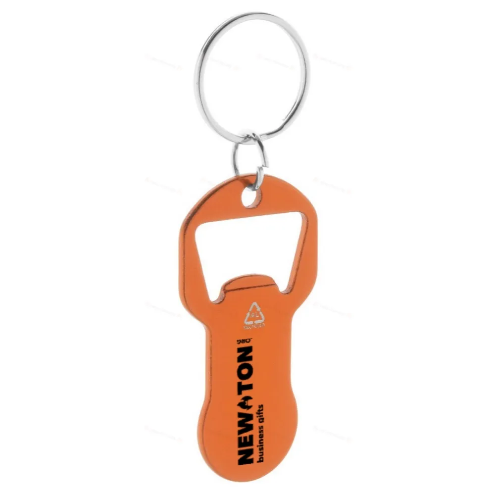 Брелок для ключей с открывалкой для бутылок из переработанного алюминия и монеткой для тележки.