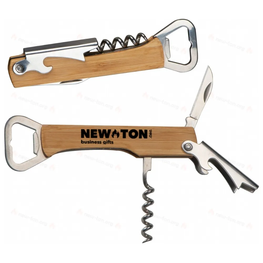 Металлический и бамбуковый нож официанта с открывалкой для бутылок, штопором и резаком для фольги.