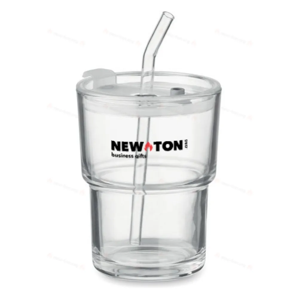 Стеклянный стакан с герметичной крышкой и съемной стеклянной соломинкой. Объем 300 мл.