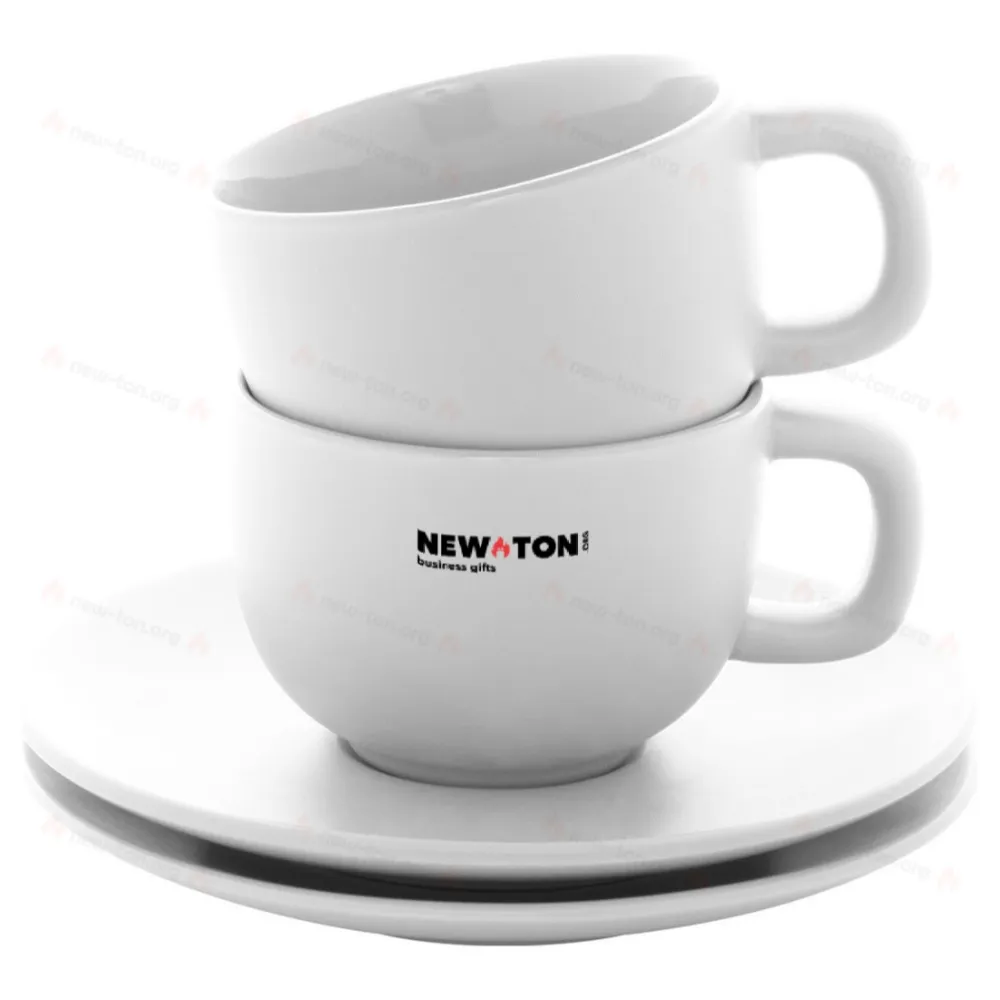Набор из двух чашек и блюдец для капучино из керамики высокого качества. С матовой внешней и глянцевой внутренней отделкой. Объем 200 мл. В крафтовой коробке.
