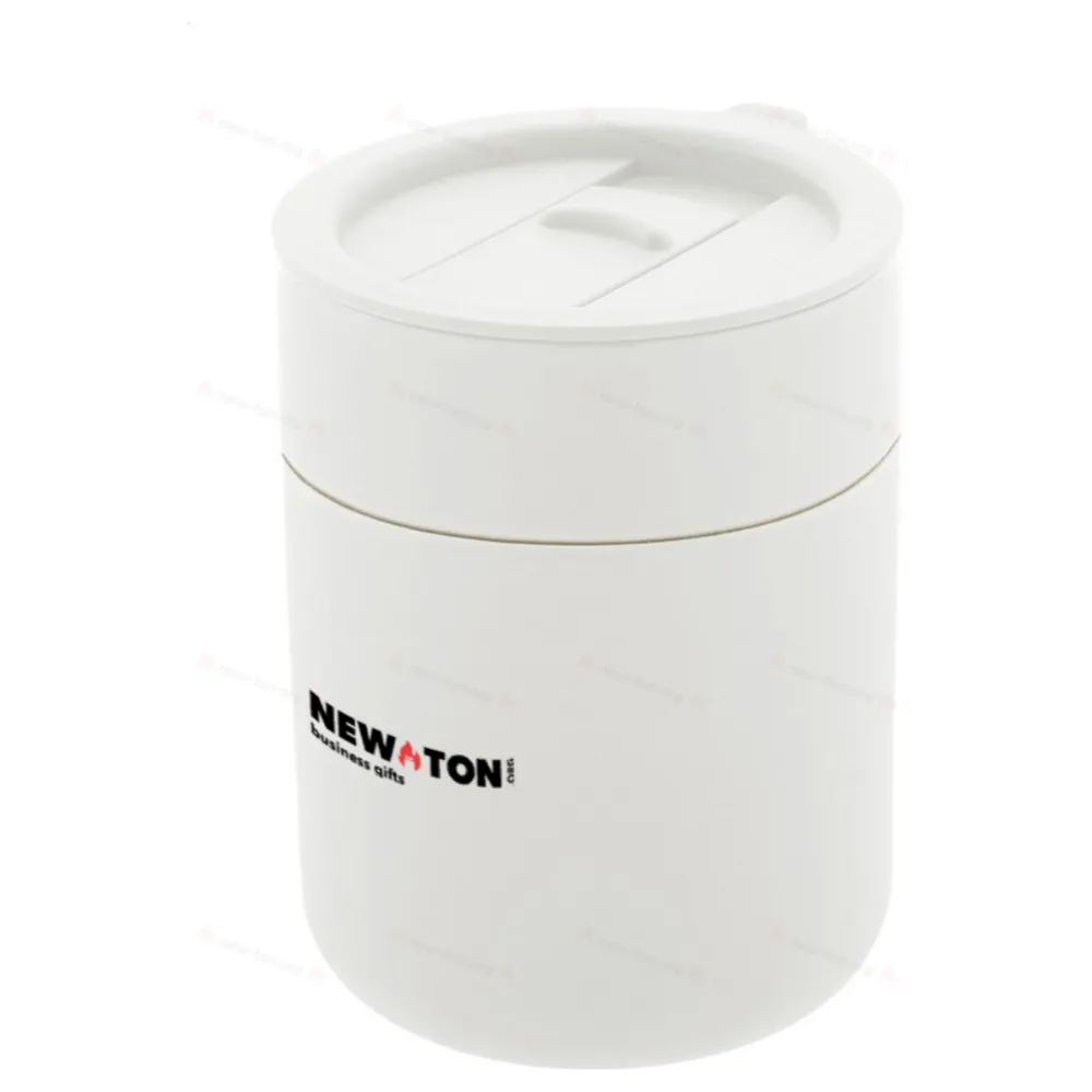 Керамическая путешественная кружка с покрытием из силикона и пластиковой крышкой для питья. 300 мл.