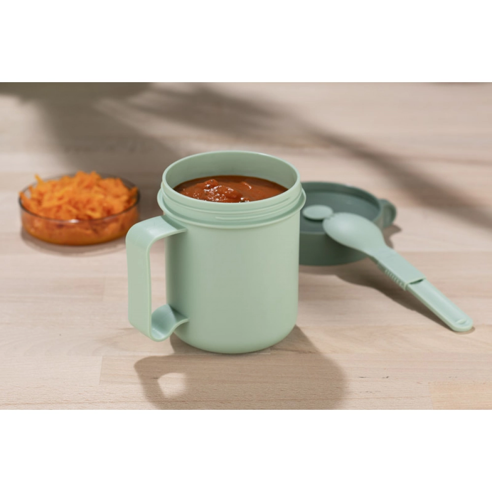 Контейнер для супа NODSY — это полезный и практичный аксессуар. Отличное решение для того, чтобы взять суп с собой, например, на работу. Он оснащен удобной ручкой и складной ложкой-вилкой. Контейнер подходит для использования в микроволновых печах, посудомоечных машинах и может быть заморожен. Объем 500 мл.