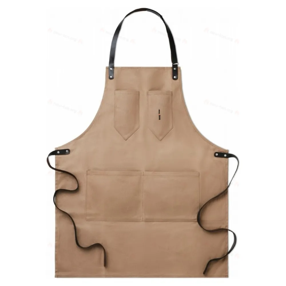 Фартук из плотного хлопка с завязками из кожзама.