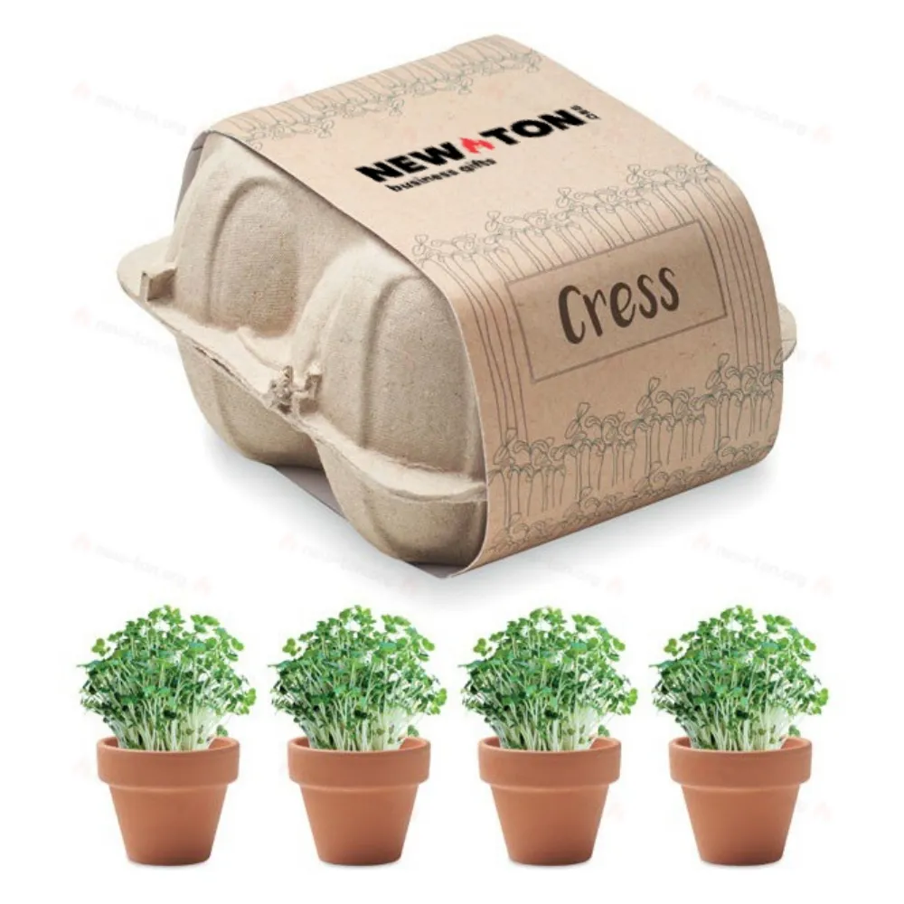 Набор из 4 глиняных терракотовых горшков с семенами салата в картонном поддоне. Сделано в ЕС. Soil tablet included.