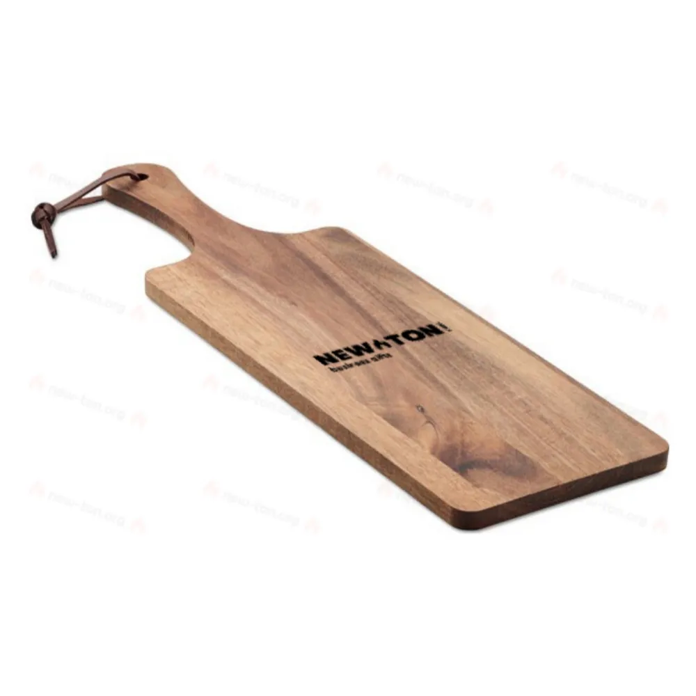 Сервировочная доска из дерева акации с ручкой на шнурке из полиуретана.