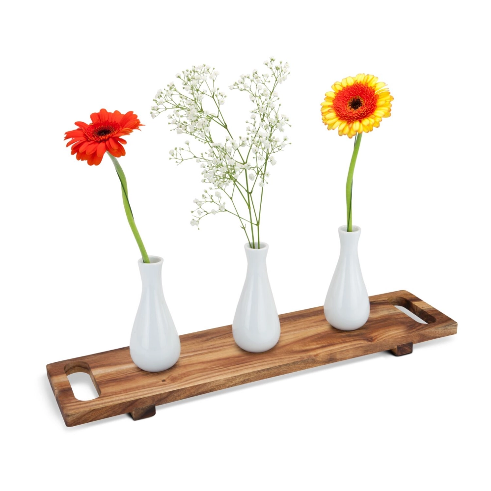 Длинная сервировочная доска из натурального дерева акации, устойчивые ножки для стильной демонстрации блюд или в качестве элегантного украшения в сочетании с вазами, цветами или свечами (дерево акации).