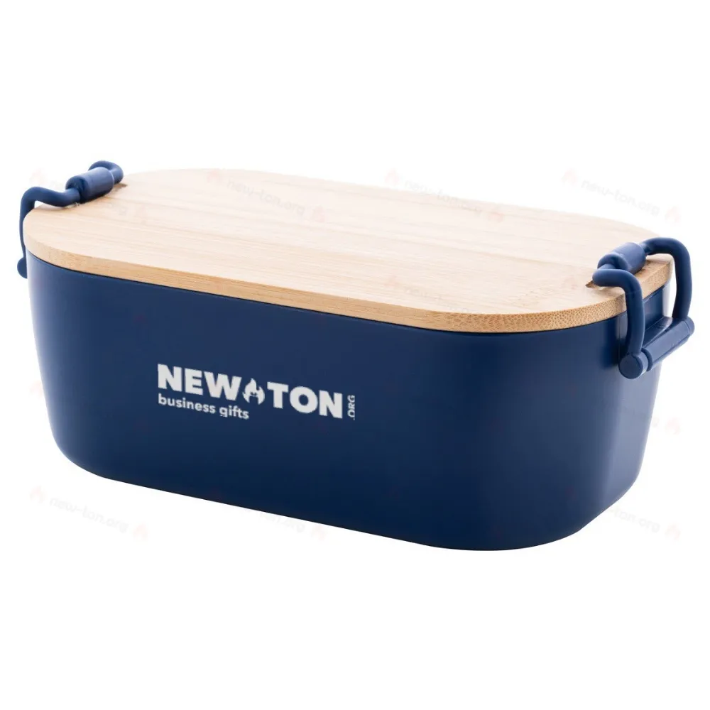 Ланч-бокс из ПП-пластика с бамбуковой крышкой и застежкой на пряжке, 1000 мл.
