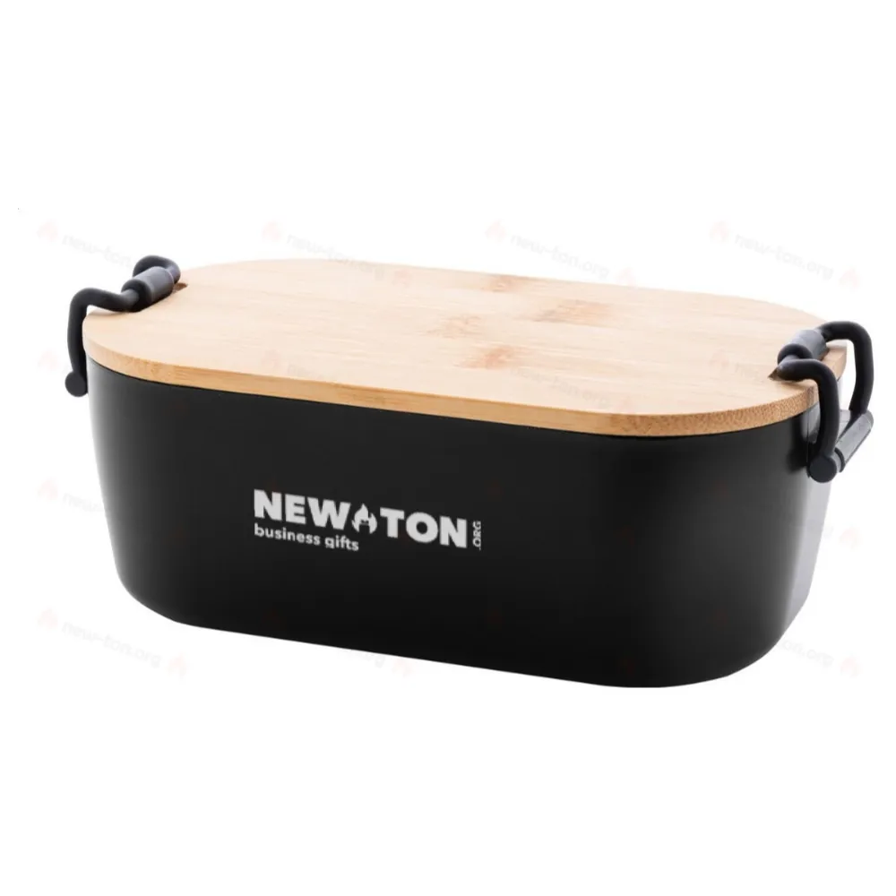 Ланч-бокс из ПП-пластика с бамбуковой крышкой и застежкой на пряжке, 1000 мл.