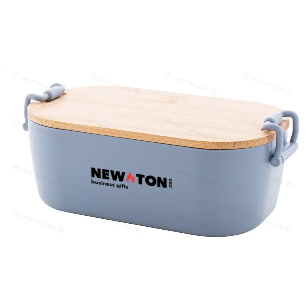 Ланч-бокс из ПП-пластика с бамбуковой крышкой и застежкой на пряжке, 1000 мл.