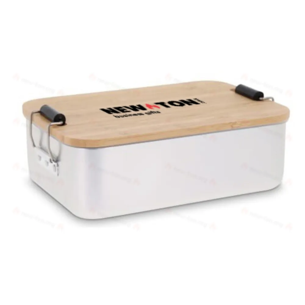 Эта стильная коробка для ланча изготовлена из алюминия с бамбуковой крышкой. Он идеально подходит для упаковки вашего завтрака или обеда.
