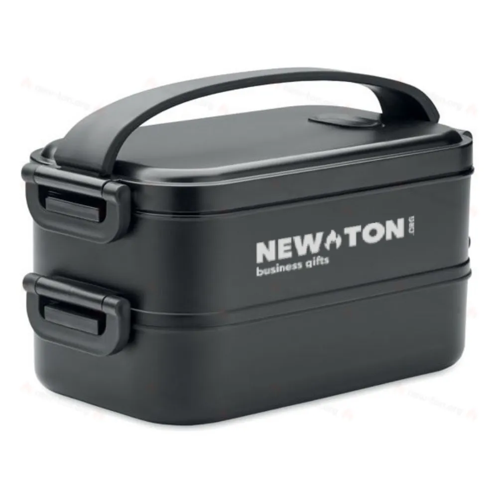 Двухуровневый ланч-бокс из переработанного полипропилена со съемным разделителем и боковыми застежками, герметичная крышка. Вместимость: 800 мл (1 уровень).
