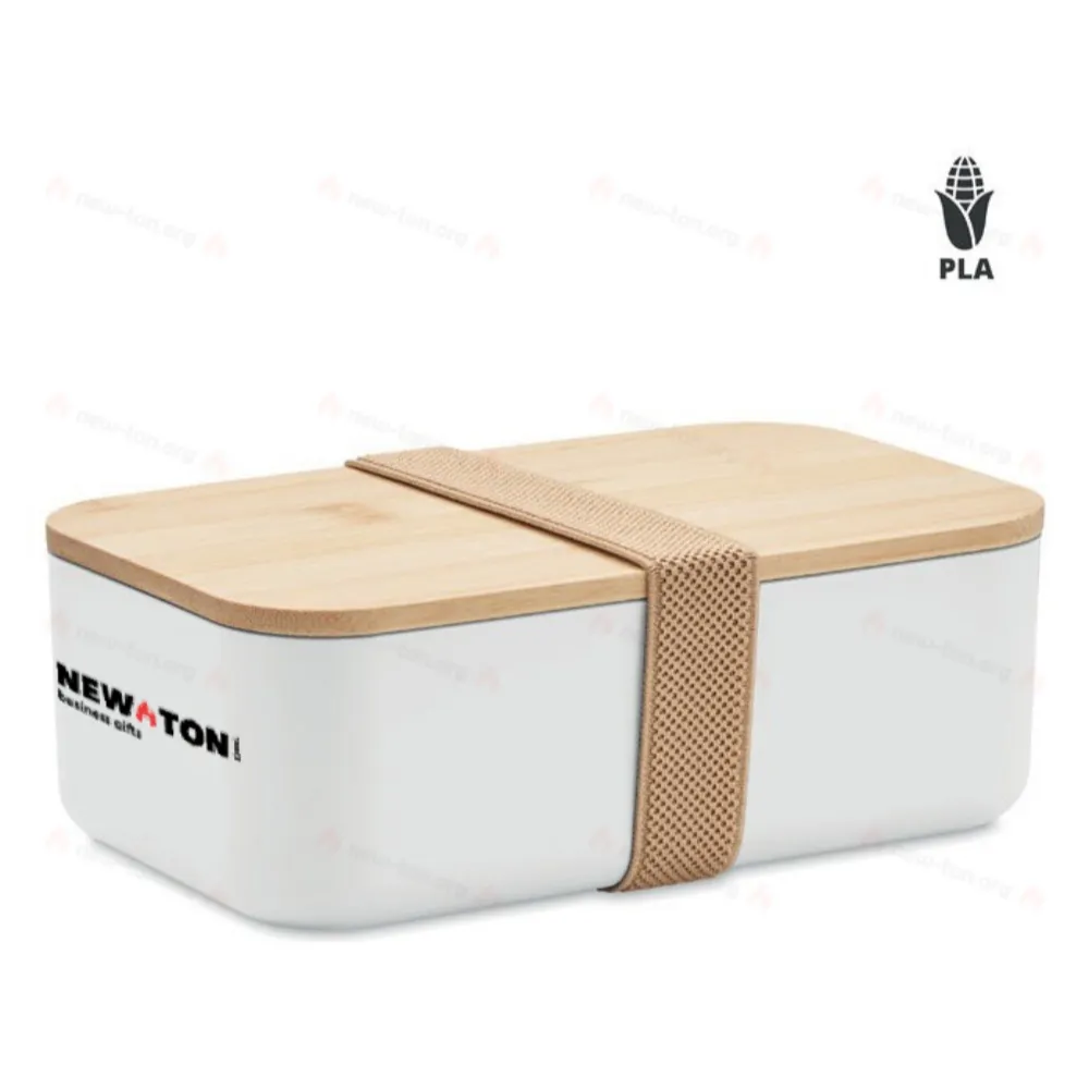 Ланчбокс из 100% биоразлагаемого пластика на основе кукурузы с бамбуковой крышкой и эластичной застежкой из RPET. Вместимость : 1000 мл.