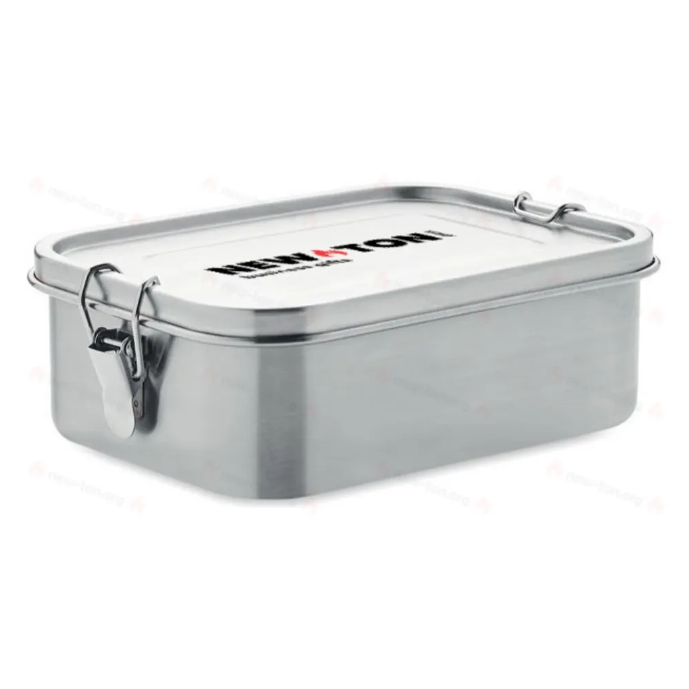 Ланч-бокс из нержавеющей стали с прочными и надежными боковыми застежками. Включает внутренний разделитель. Вместимость: 1200 мл.