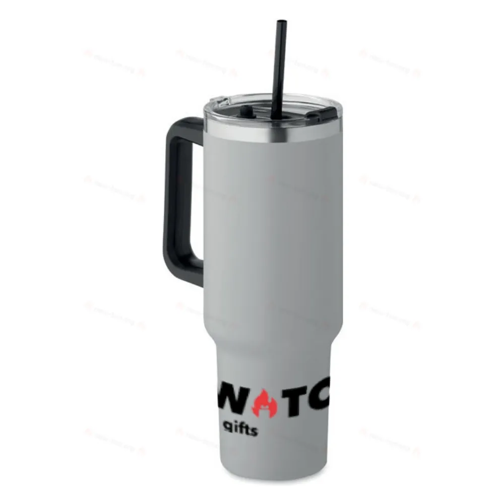 Термокружка с двойными стенками из переработанной нержавеющей стали 90% и 10% нержавеющей стали с герметичной крышкой и соломинкой. Объем 1200 мл.