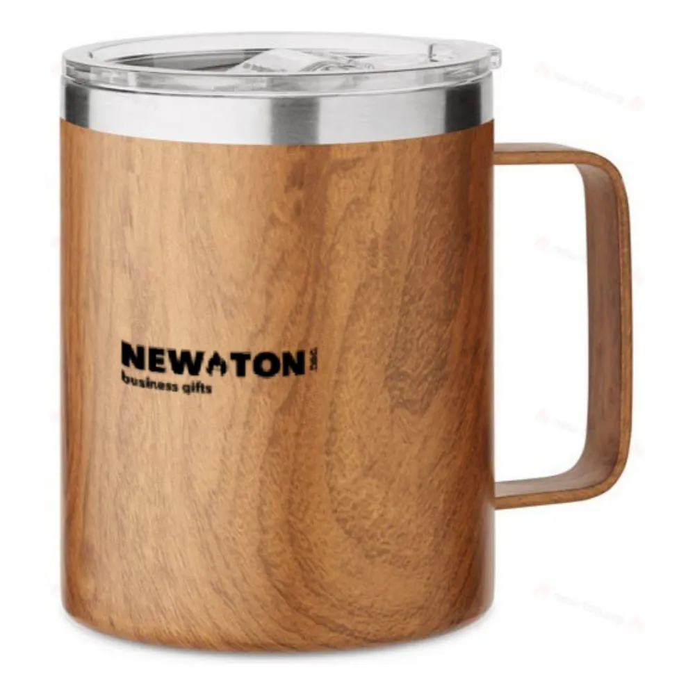 Термокружка с двойными стенками из переработанной нержавеющей стали (90% переработанной нержавеющей стали и 10% нержавеющей стали) с деревянным покрытием и крышкой с отверстием для питья. Объем 300 мл.