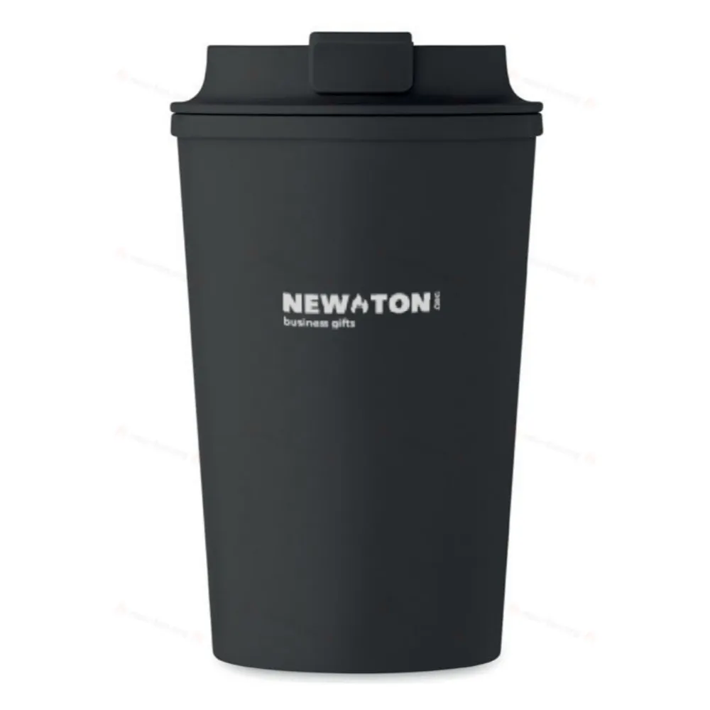 Термокружка с двойными стенками из 100% биоразлагаемого пластика на основе кукурузы с крышкой из полипропилена и термопластичной резины. Герметичная. Объем: 350 мл.