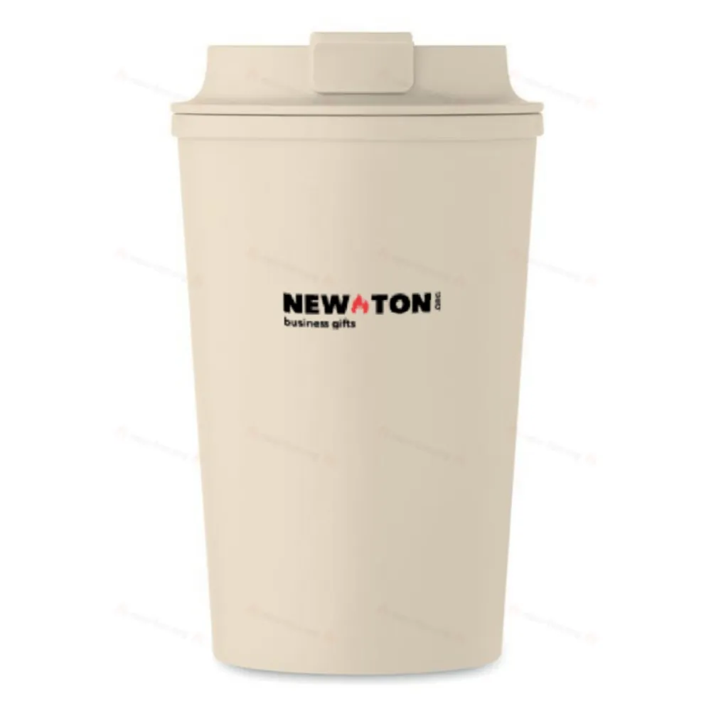 Термокружка с двойными стенками из 100% биоразлагаемого пластика на основе кукурузы с крышкой из полипропилена и термопластичной резины. Герметичная. Объем: 350 мл.