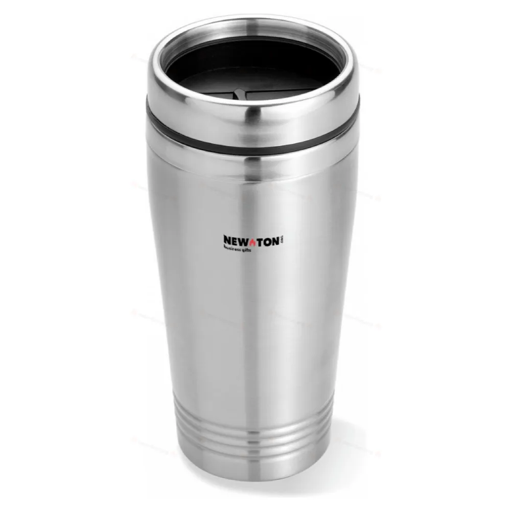 Термокружка с двойными стенками из нержавеющей стали с пластиковой крышкой.