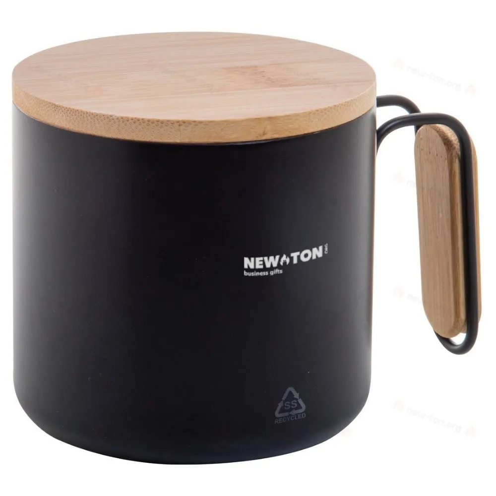 Двухстенная термокружка из переработанной нержавеющей стали с бамбуковой крышкой и ручкой. 300 мл.