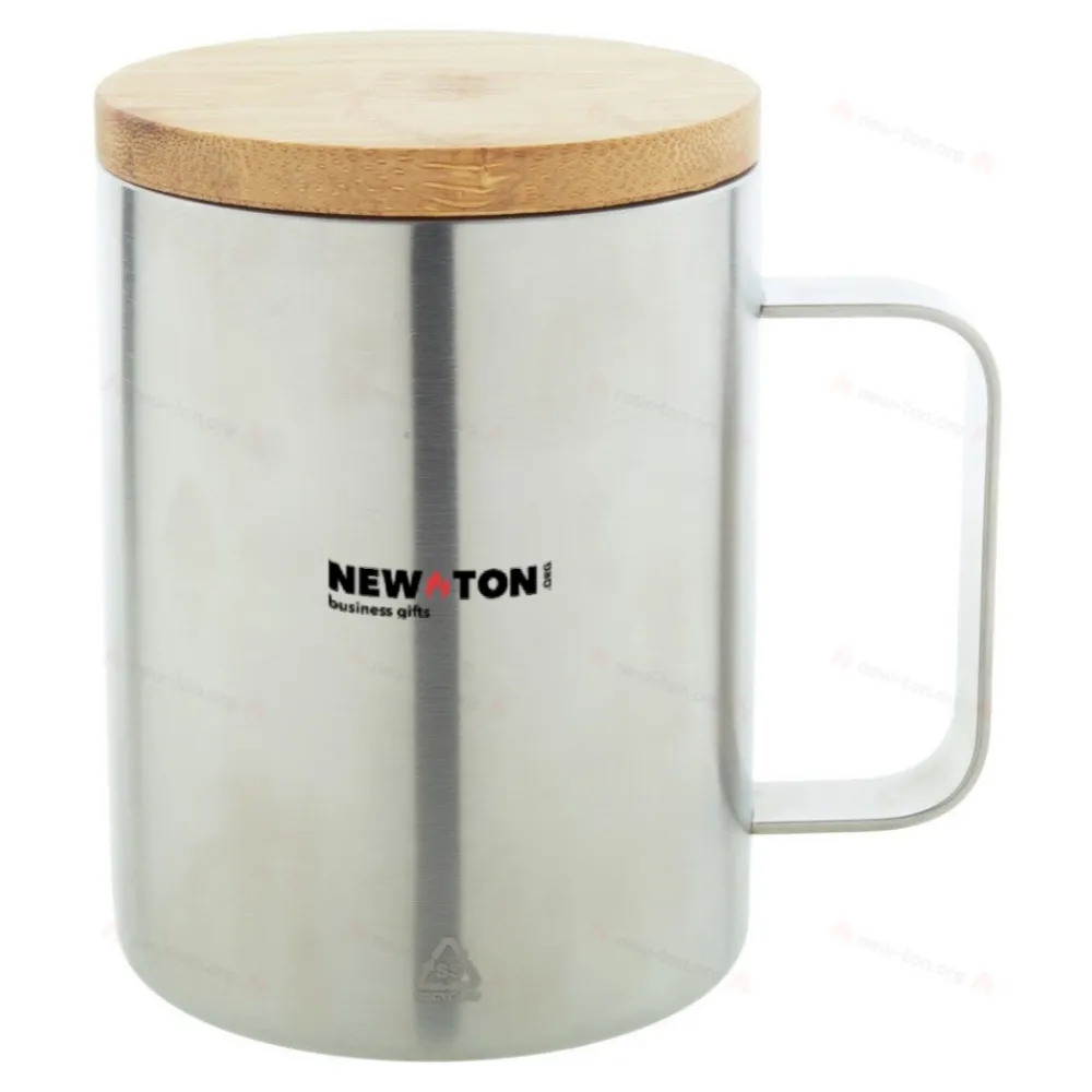 Двухстенная термокружка из переработанной нержавеющей стали с бамбуковой крышкой, 350 мл.