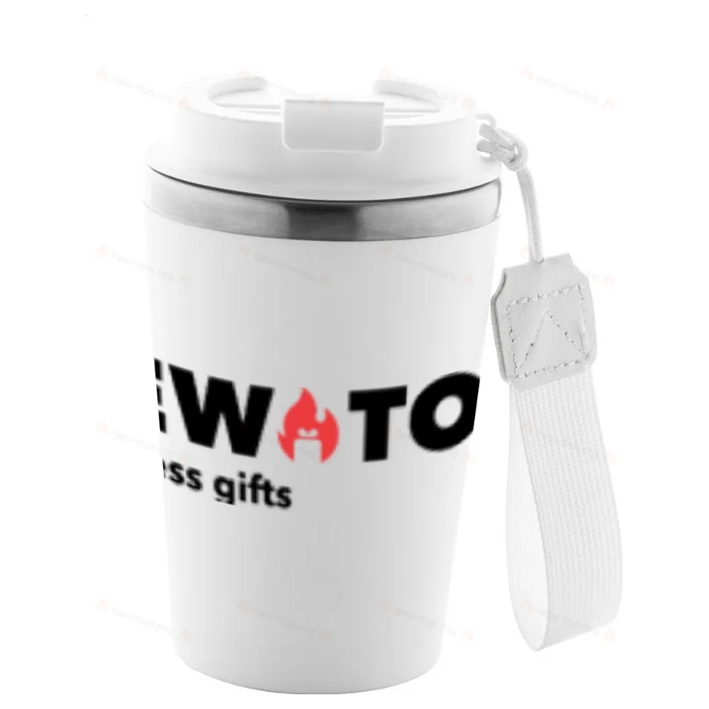 Двойная стенка, изготовленная из переработанной нержавеющей стали, изолированный термокружок с наружным слоем из пластика PP и крышкой для питья. С ремешком для переноски из RPET. 350 мл.