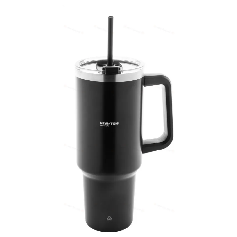 Двойная стенка, переработанный нержавеющий стальной термокружка с вакуумным изоляцией и крышкой для питья из ПС и соломкой из ПП. 1200 мл.