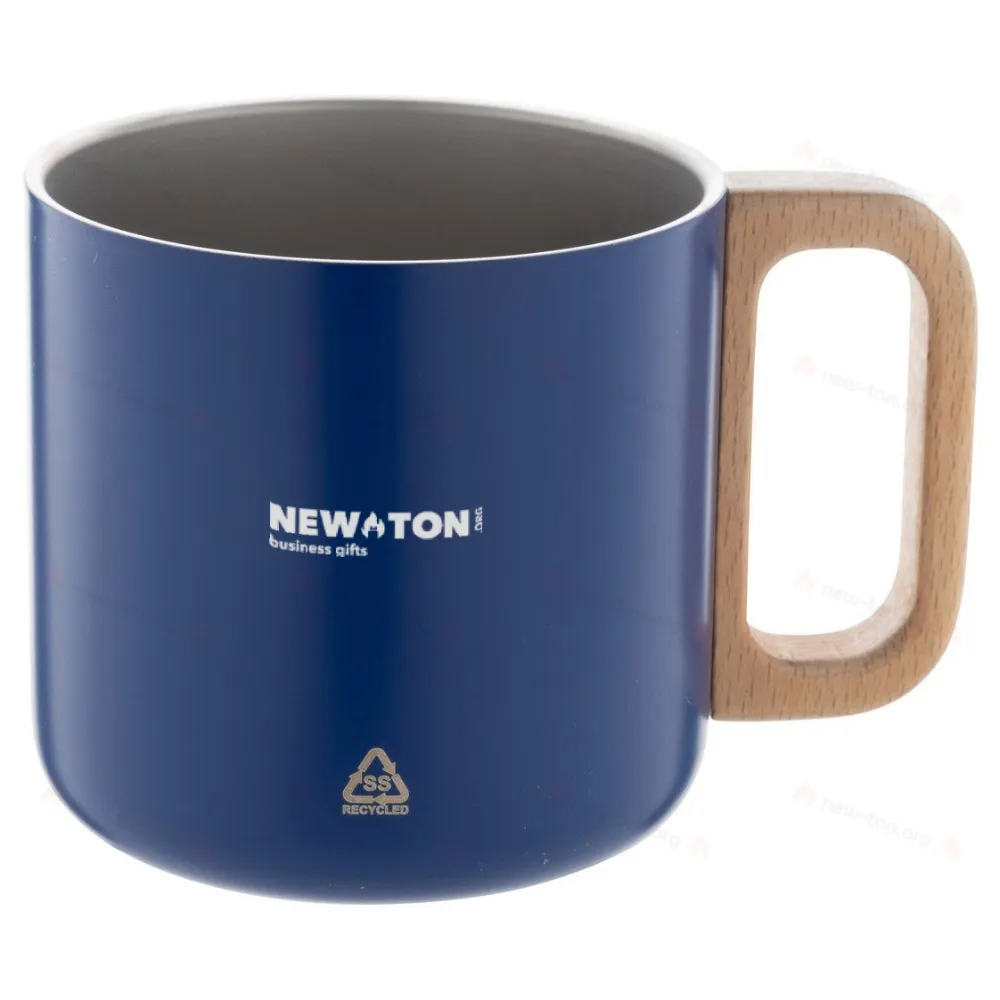 Термокружка с двойными стенками емкостью 350 мл, выполненная из переработанной нержавеющей стали с деревянной ручкой