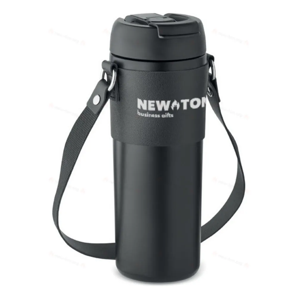 Термос с двойными стенками из нержавеющей стали, крышкой из полипропилена (крышка 2 в 1 с соломинкой) и полиуретановым ремешком для переноски. Герметичен. Емкость: 700 мл.