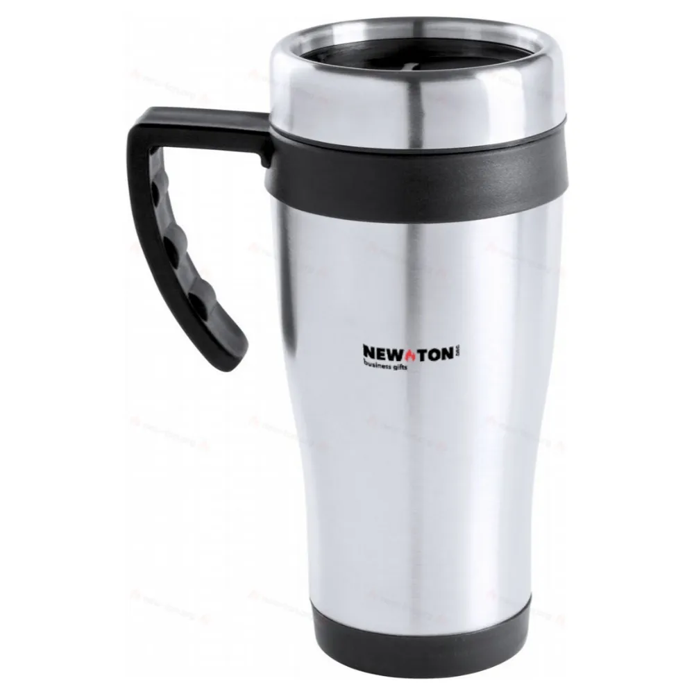 Термокружка из нержавеющей стали с двойными стенками, с цветными пластиковыми деталями и ручкой, в подарочной коробке. 450 мл.