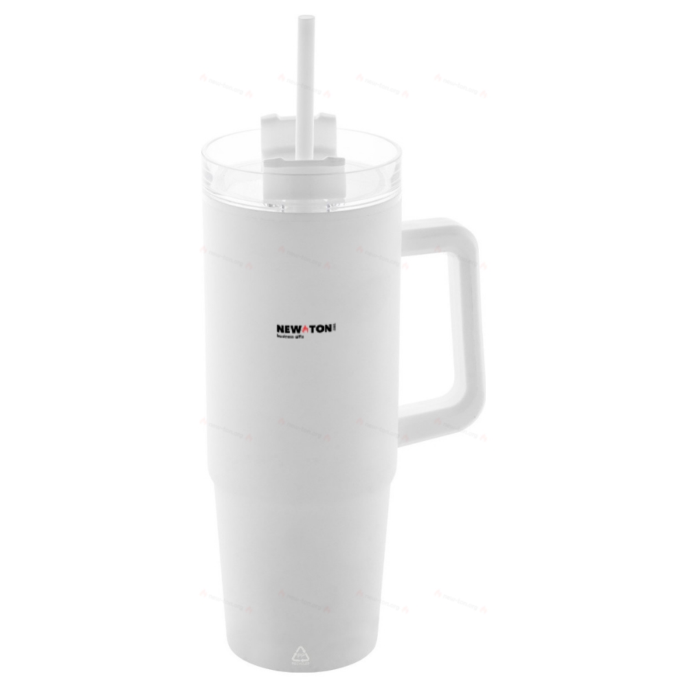 Двухстенчатая изолированная термокружка из переработанного пластика PP с пластиковой крышкой для питья и соломкой. 900 мл.