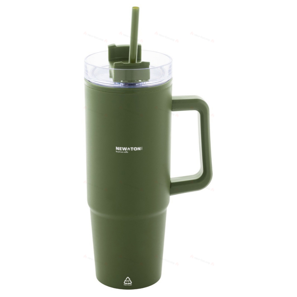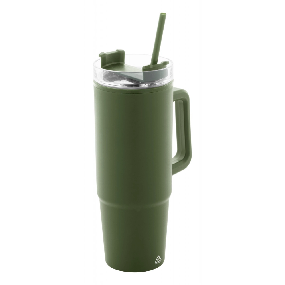 Двойная стенка, изготовленная из переработанного пластика PP, изолированная термокружка с пластиковой крышкой для питья и соломкой. 900 мл.