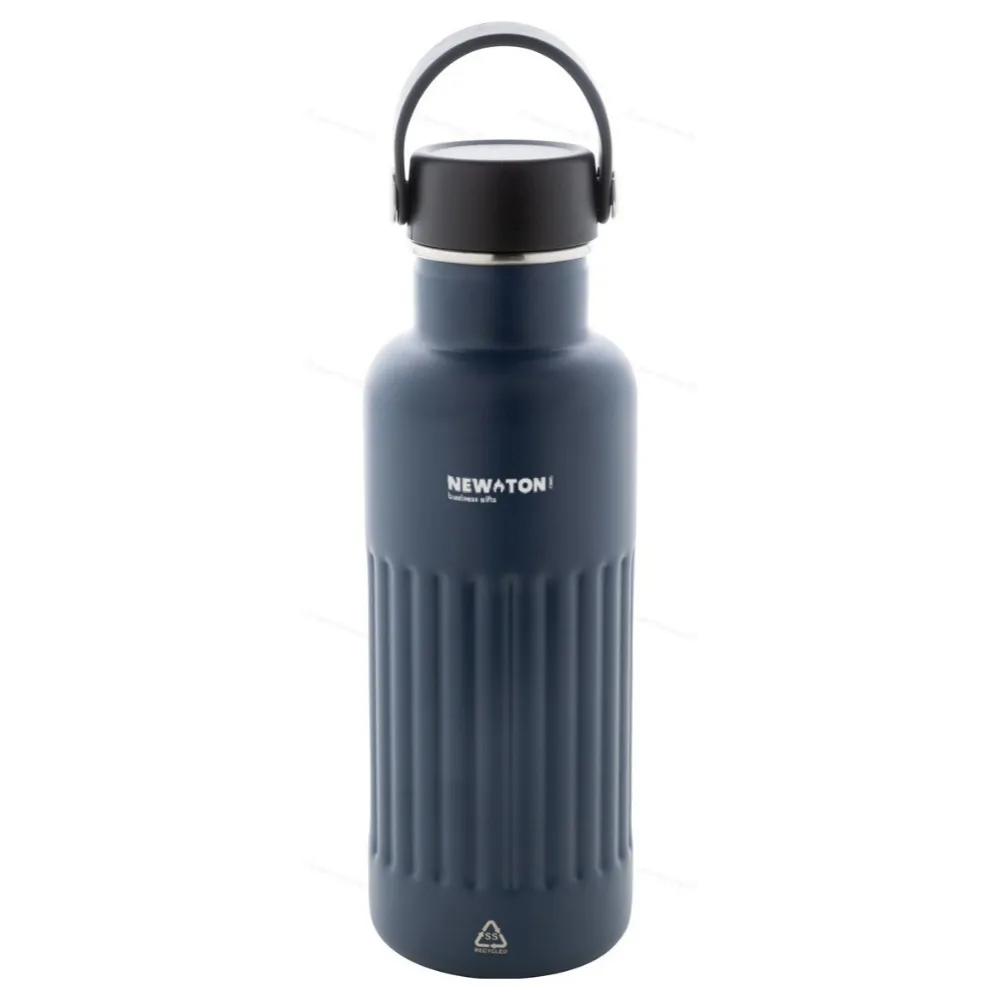 Двухстенная, переработанная нержавеющая стальная вакуумная изолированная бутылка с крышкой для переноски из ПП-пластика. 500 мл.