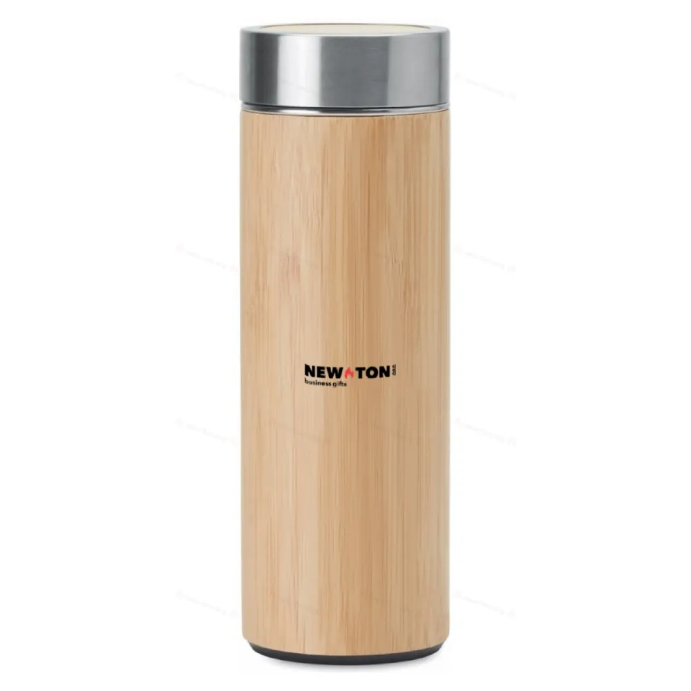 Термос двустенчатый из нержавеющей стали, декорированный бамбуком. Внутри чайное ситечко. Объем 400 мл. FSC®-certified | FSC 100%, N5.7, FSC-C213206