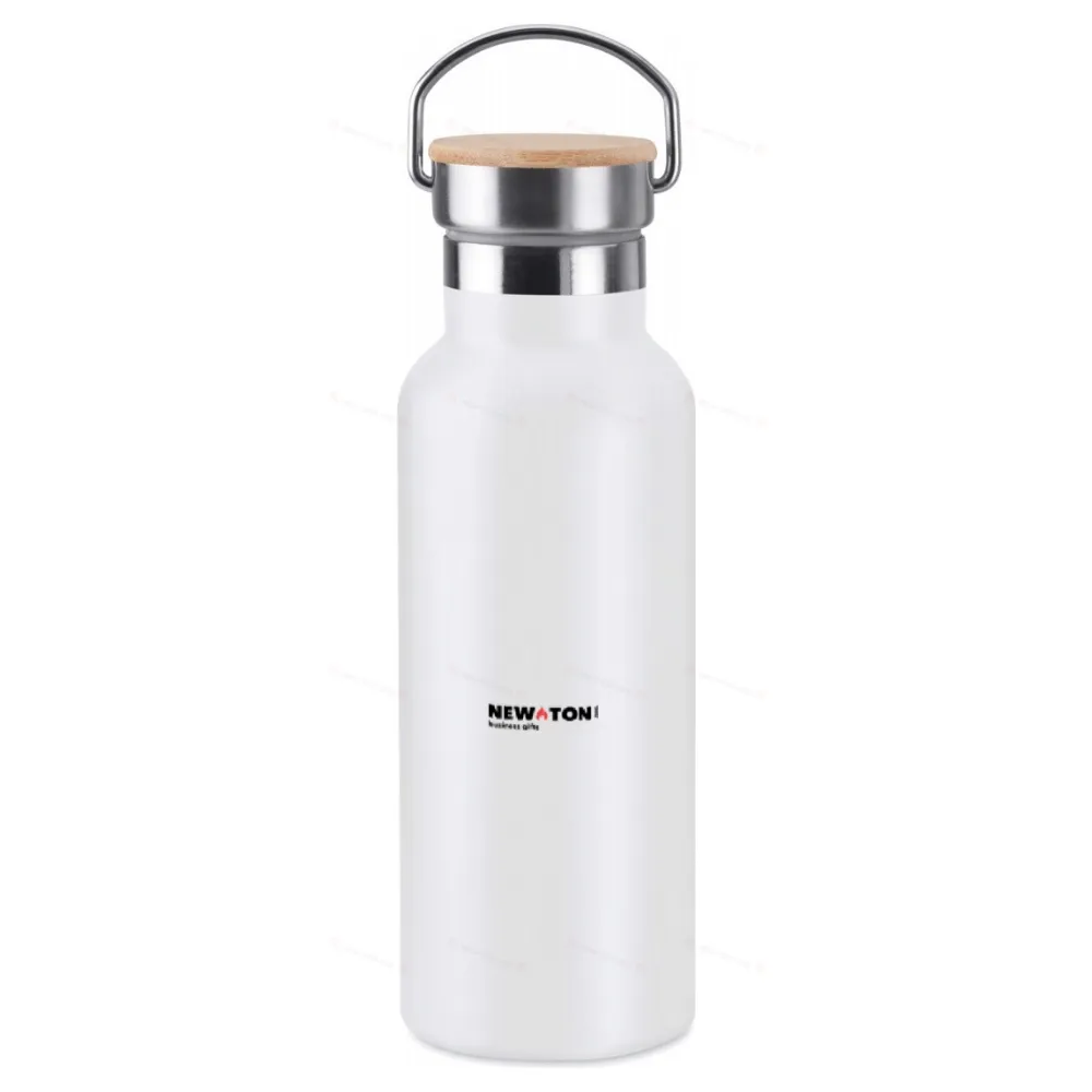 Термос двустенчатый из нержавеющей стали 500 мл. Крышка из бамбука с ручкой. Не протекает.