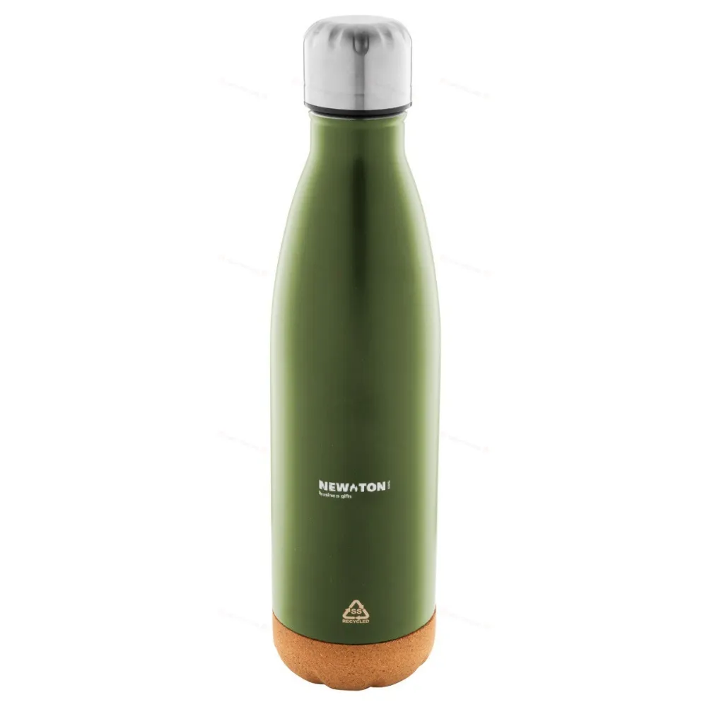 Двухстенная, переработанная нержавеющая стальная вакуумная изолированная бутылка с натуральным корковым основанием. 500 мл.